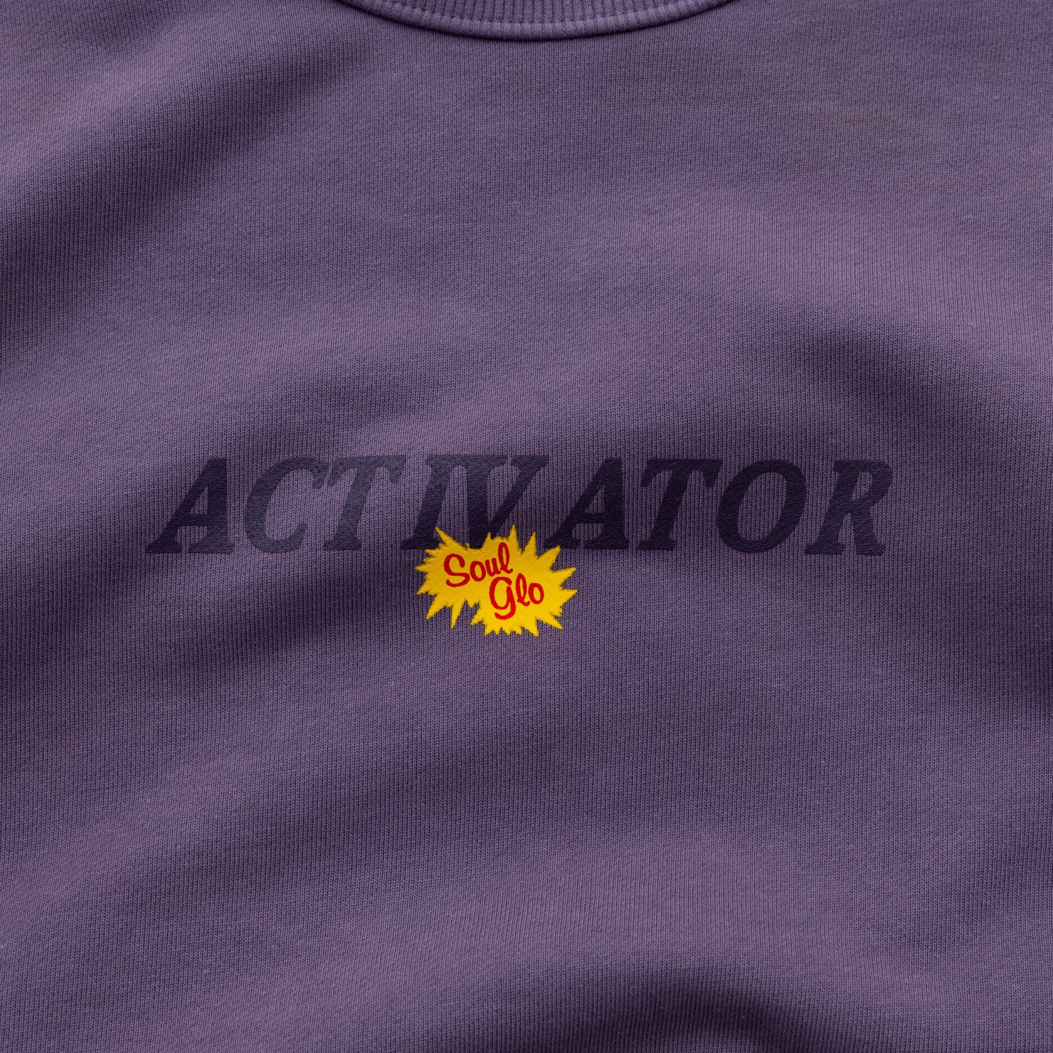 The Activator crewneck is a tribute to the most iconic fictional hair product of all time. Front-printed with the word that started the transformation and anchored by that unforgettable Soul Glo 'branding', it nods to the brand that lived in every couch stain across Coming to America.