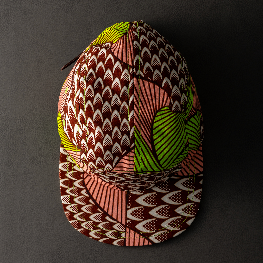 Beautifully crafted, handmade, one of-a-kind, five-panel Anansi (standard visor) hats, made from authentic cotton West African Ankara fabric. Each hat is expertly sewn with taped seams and an adjustable leather tab.