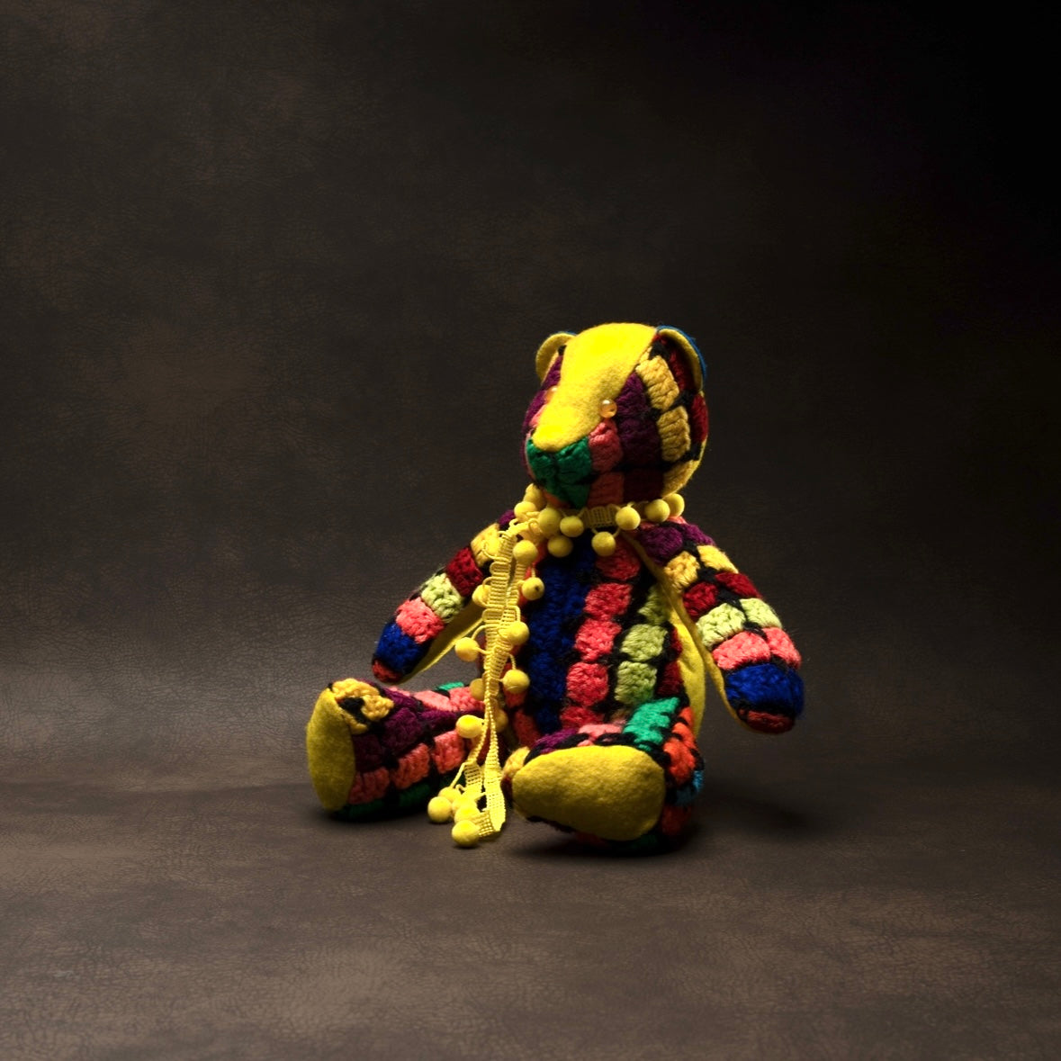 The BOBBYJOSEPH® “Theodore” Teddybear silhouette renowned for its clever use of materials and engineering. This 16” cotton “Theodore” was made using an excellent use of crochet rosettes, a handcrafted work of art.