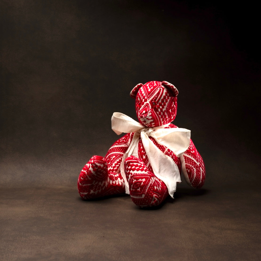The BOBBYJOSEPH® “Theodore” Teddybear silhouette renowned for its clever use of materials and engineering. This 16” silk “Theodore” is adorned with Mexican-inspired Tenangos embroidery— a handcrafted work of art.
