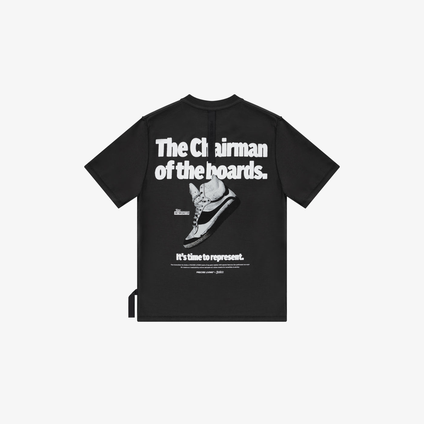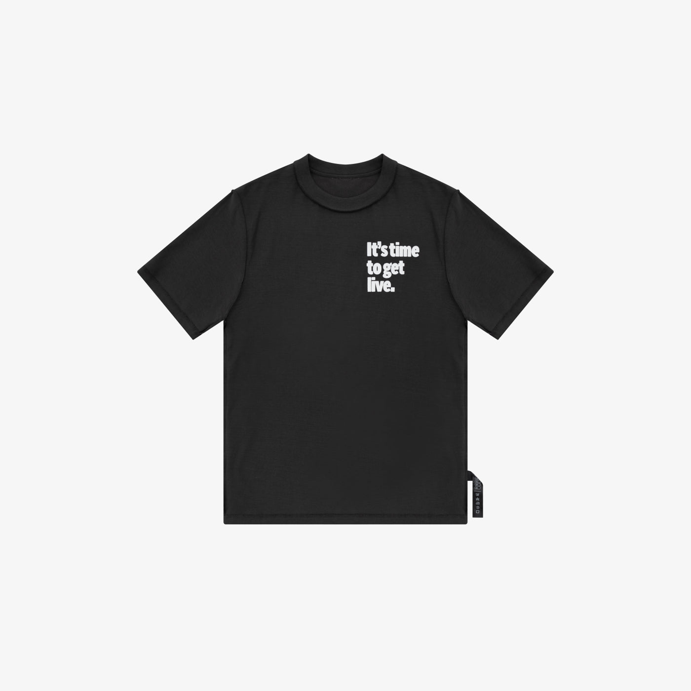 Inside out constructed heavyweight vintage wash t-shirt with screen print at front and across back. Finishing details exposed at back and side seam.