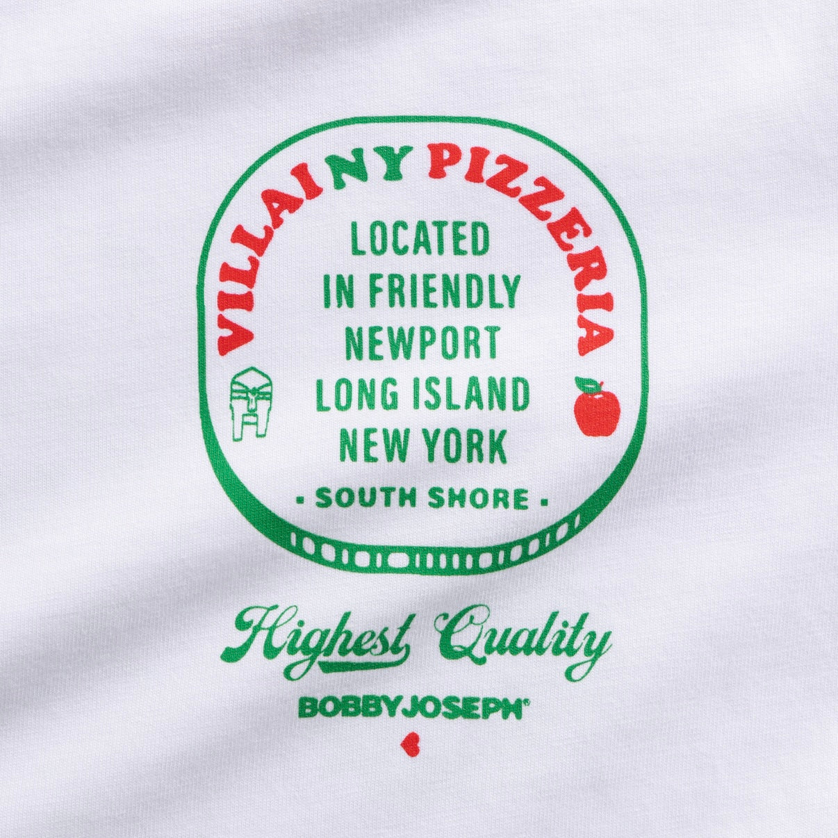 This DOOM drop borrows the visual language of pizza parlors and delivery menus, remixing it with villainy, wit, and obsessive detail. Designed as a front-and-back print on our signature 5.7 oz combed cotton tee, considered the best fabric and fitting t-shirt on the planet.