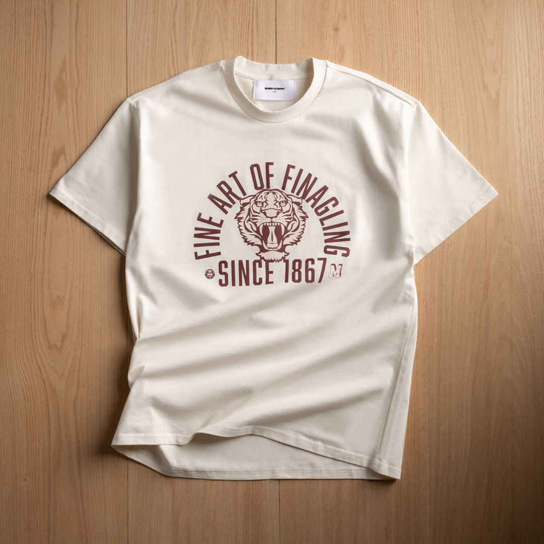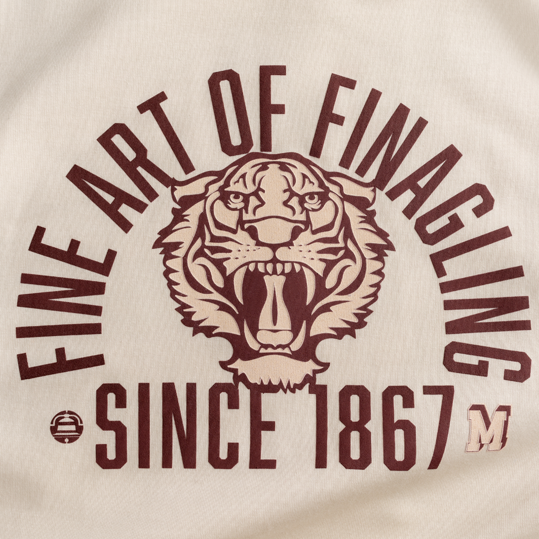 “Finagling Since 1867” — an ecru (cream), boxy 7 oz heavyweight tee, a nod to the lifelong finesse it takes to shape a future.