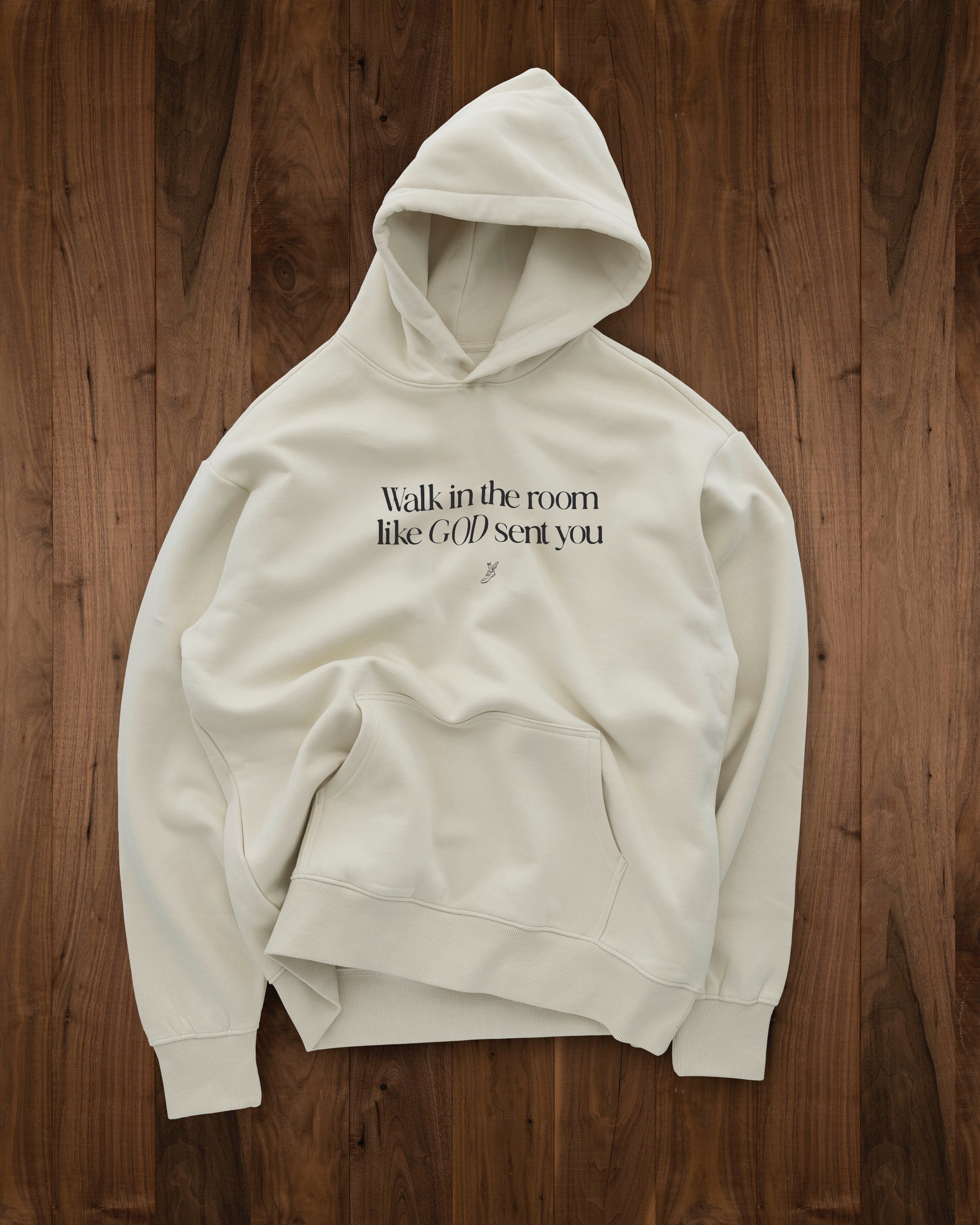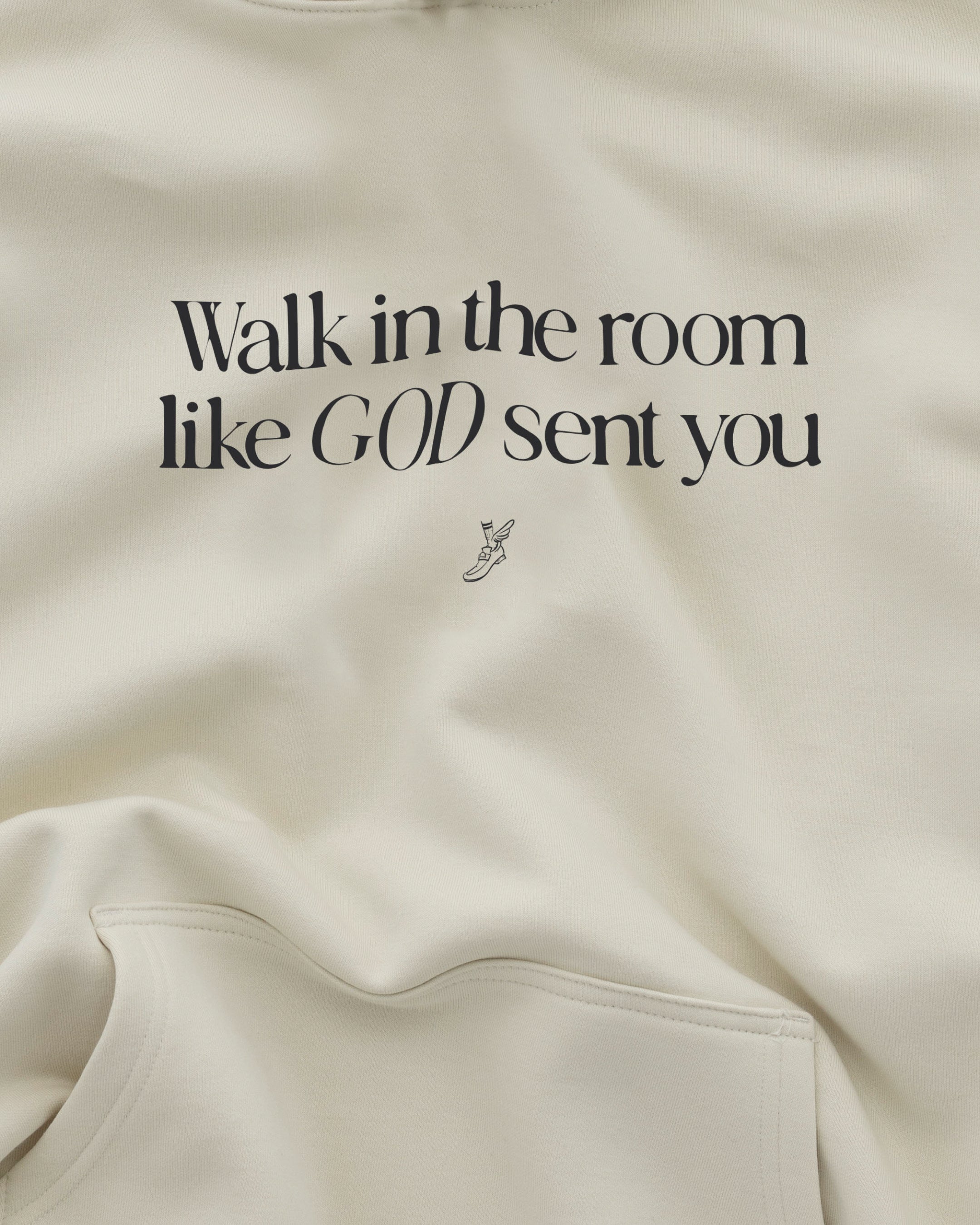 Oversized fit, mid weight 9.4 oz cotton/poly fleece fabric. Features a bold screen printed affirmation at center chest