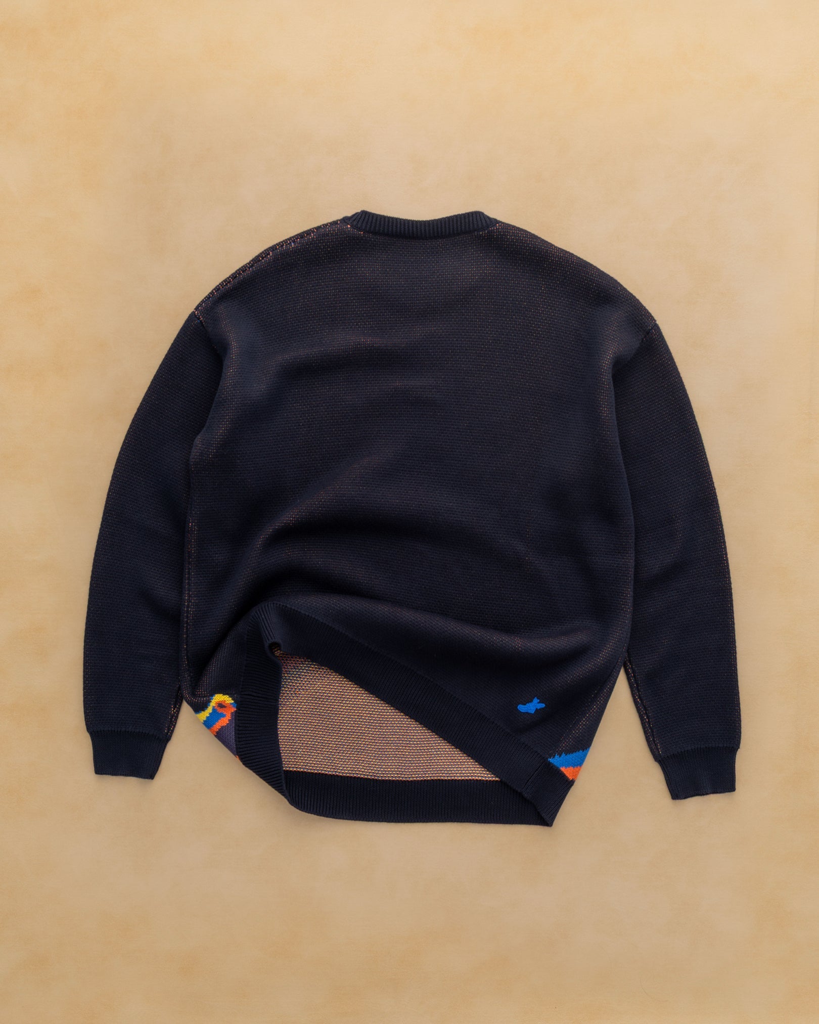 Knit in a 5-gauge jacquard jersey, the Slam Jam Sweater features a bold color-blocked silhouette that commands attention with ease. Chainstitch detailing along the sleeve adds a layer of craftsmanship and texture, while our signature Messenger patch at the back hem roots it in Church League Champions® identity. A modern classic—loud in presence, rich in detail.