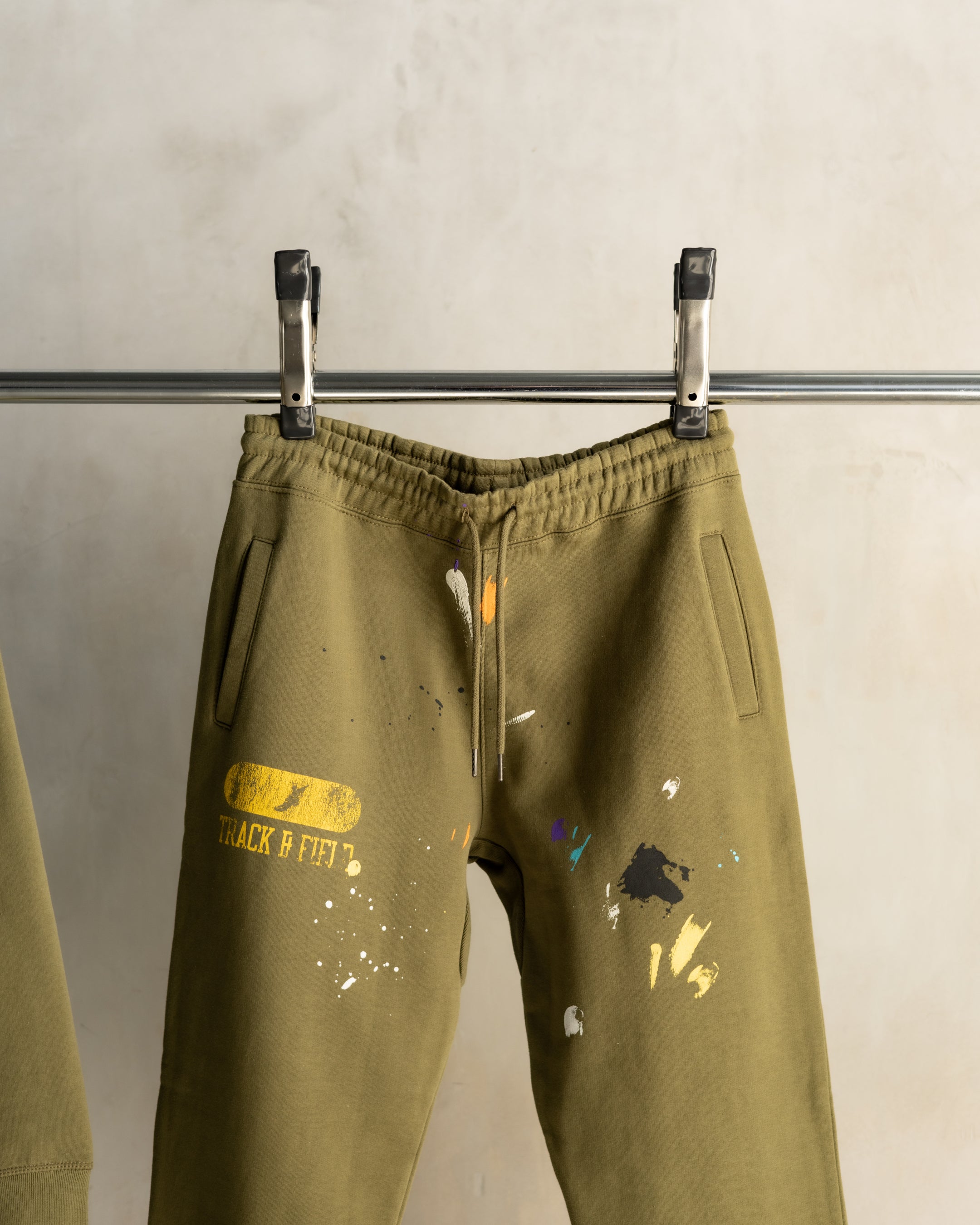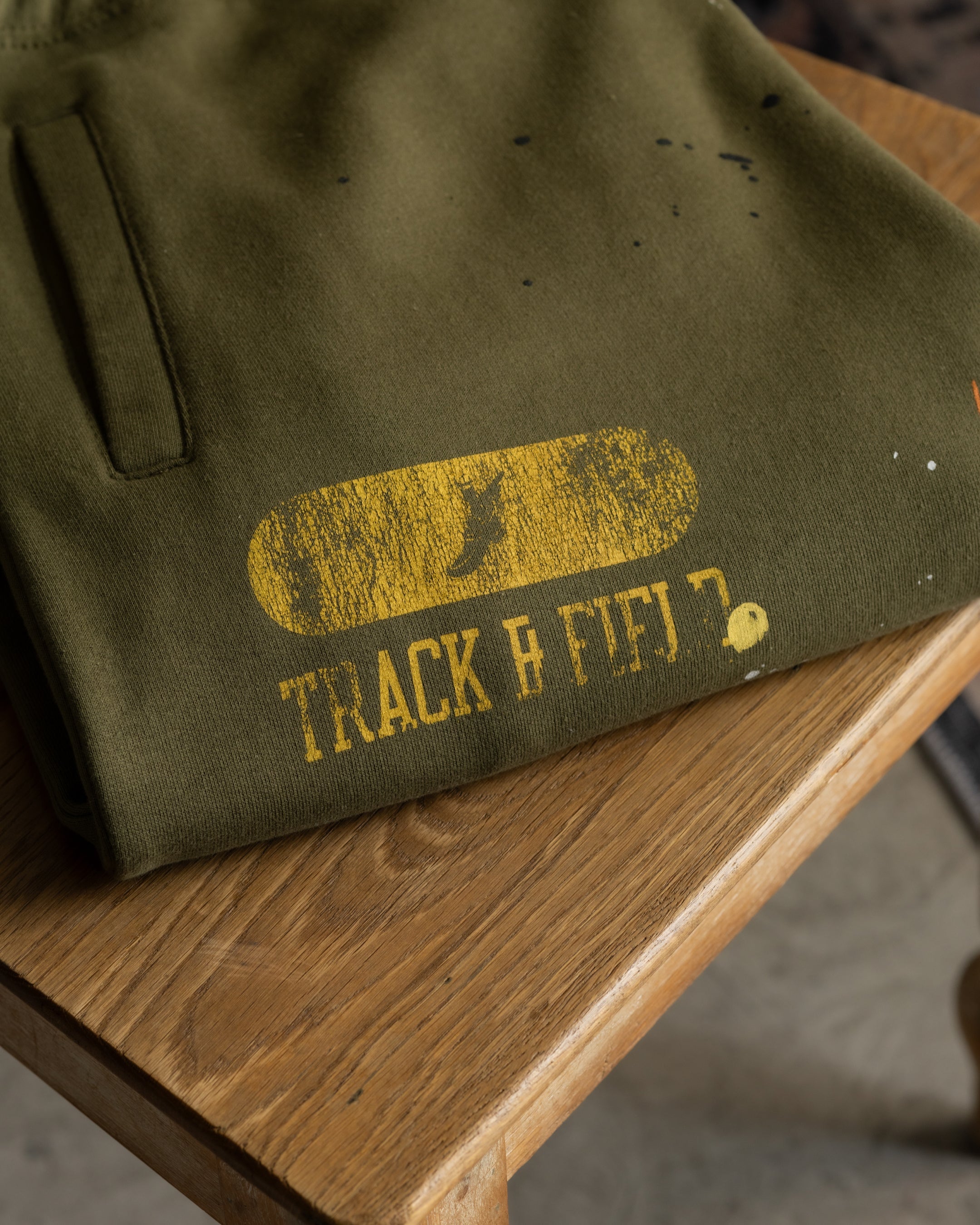 Crafted from heavy 400 gsm cotton fleece, this piece redefines comfort. Aged screen print, and unique paint splatter—a versatile staple for lounging