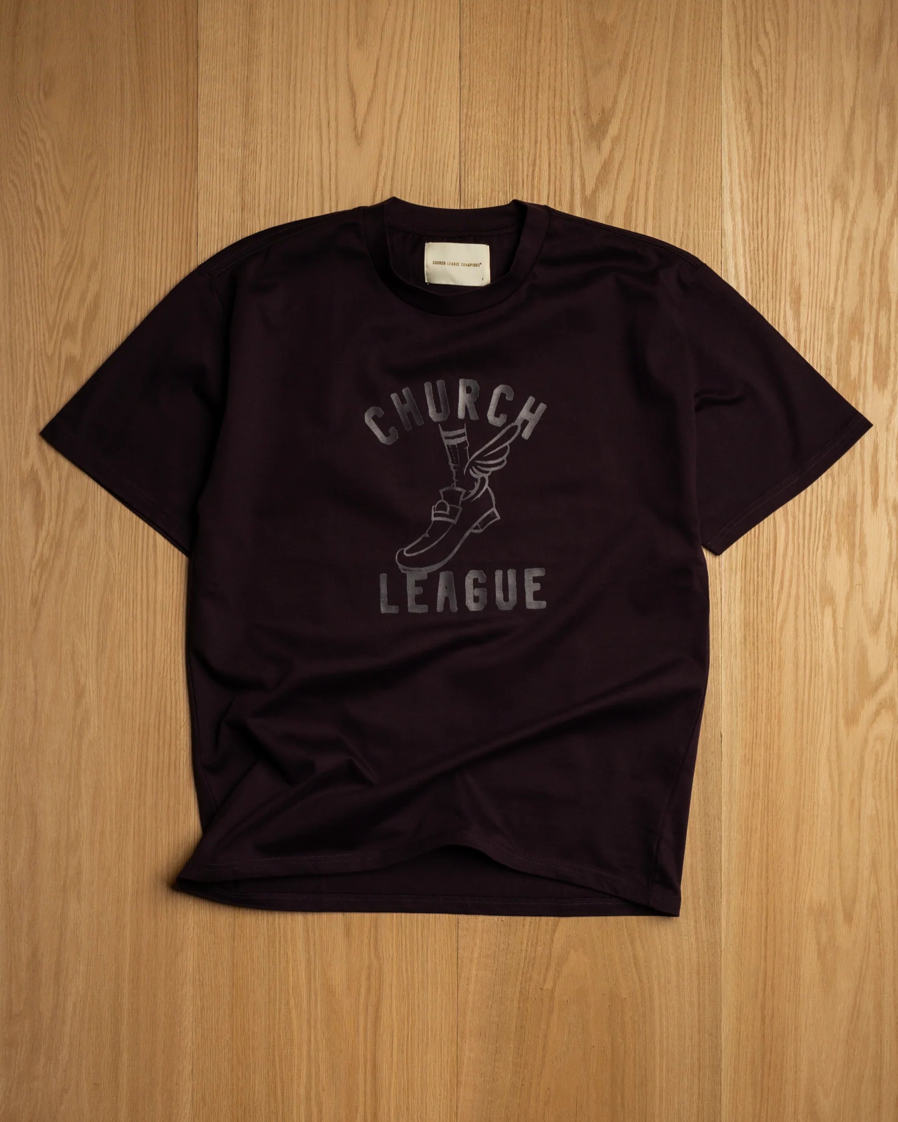 Heavyweight oversize 8.2 oz construction t-shirt with high density screen print at front of a buttery soft cotton.